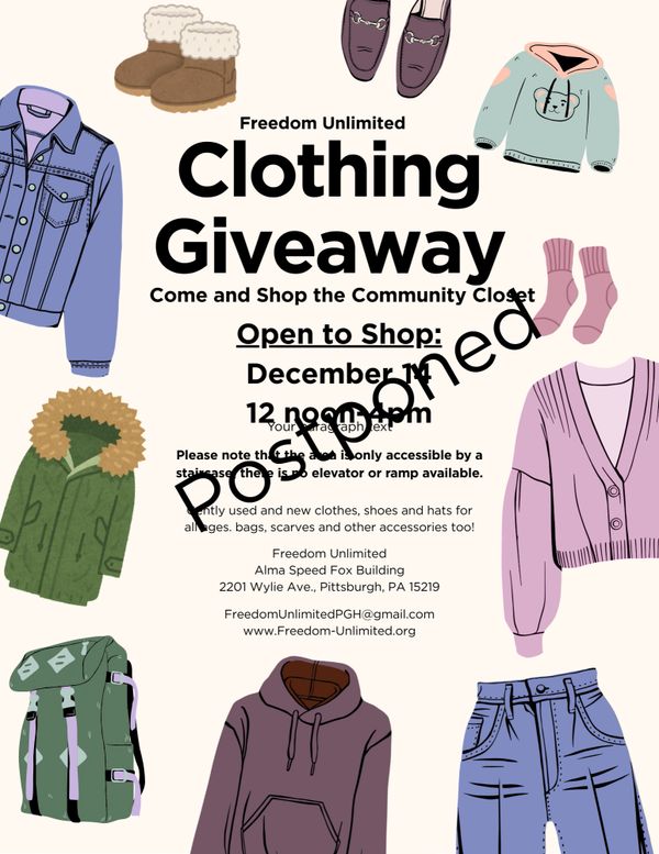 Due to the Winter Weather Advisory, we have to Postpone the Community Closet today. Check back for a new date.